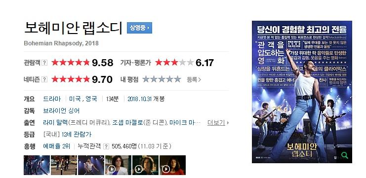 퀸을 좋아해서 재밌게 봤지만 흐름 자체는 깔끔하지 못한것 같아요...마지막 피날레 공연은 전율이었습니다. |