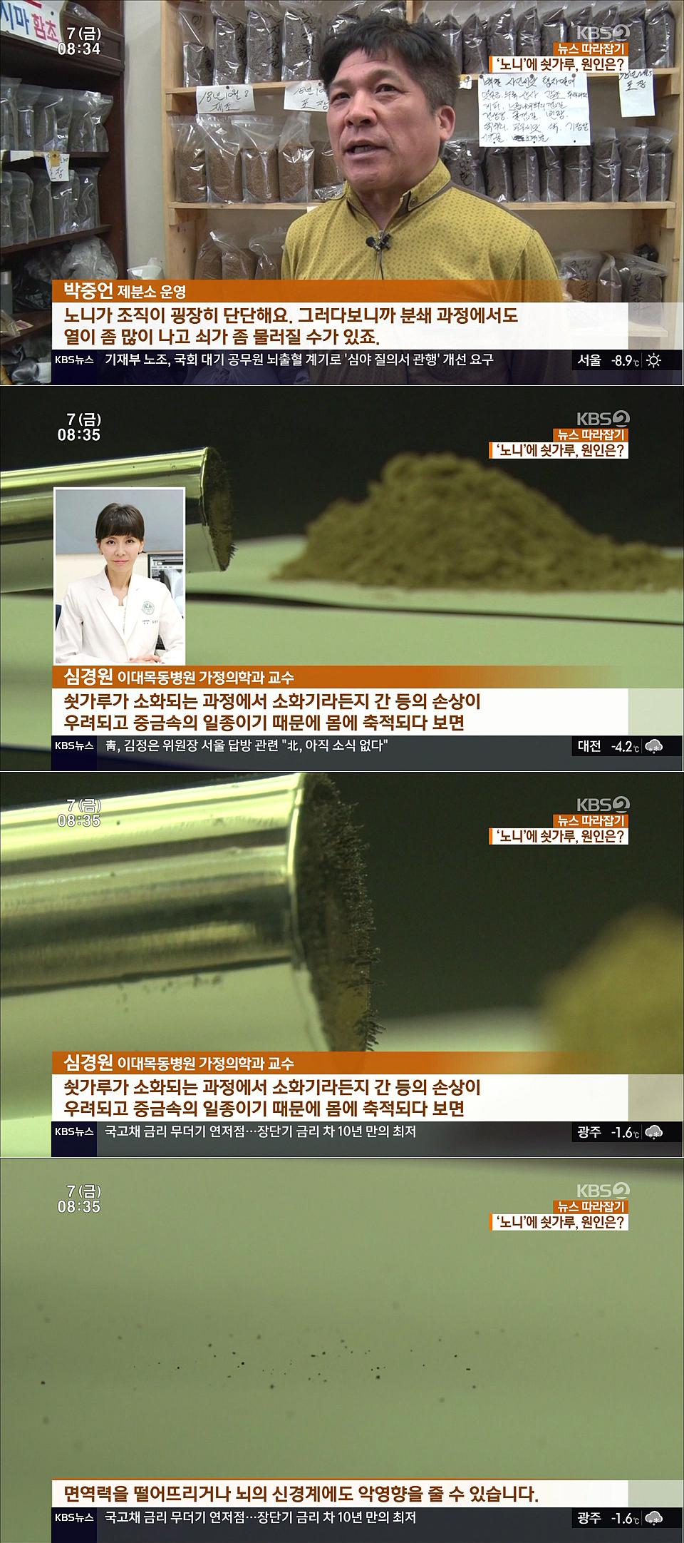 기계로 분쇄하는 과정에서 쇳가루가 약간이라도 들어가는데