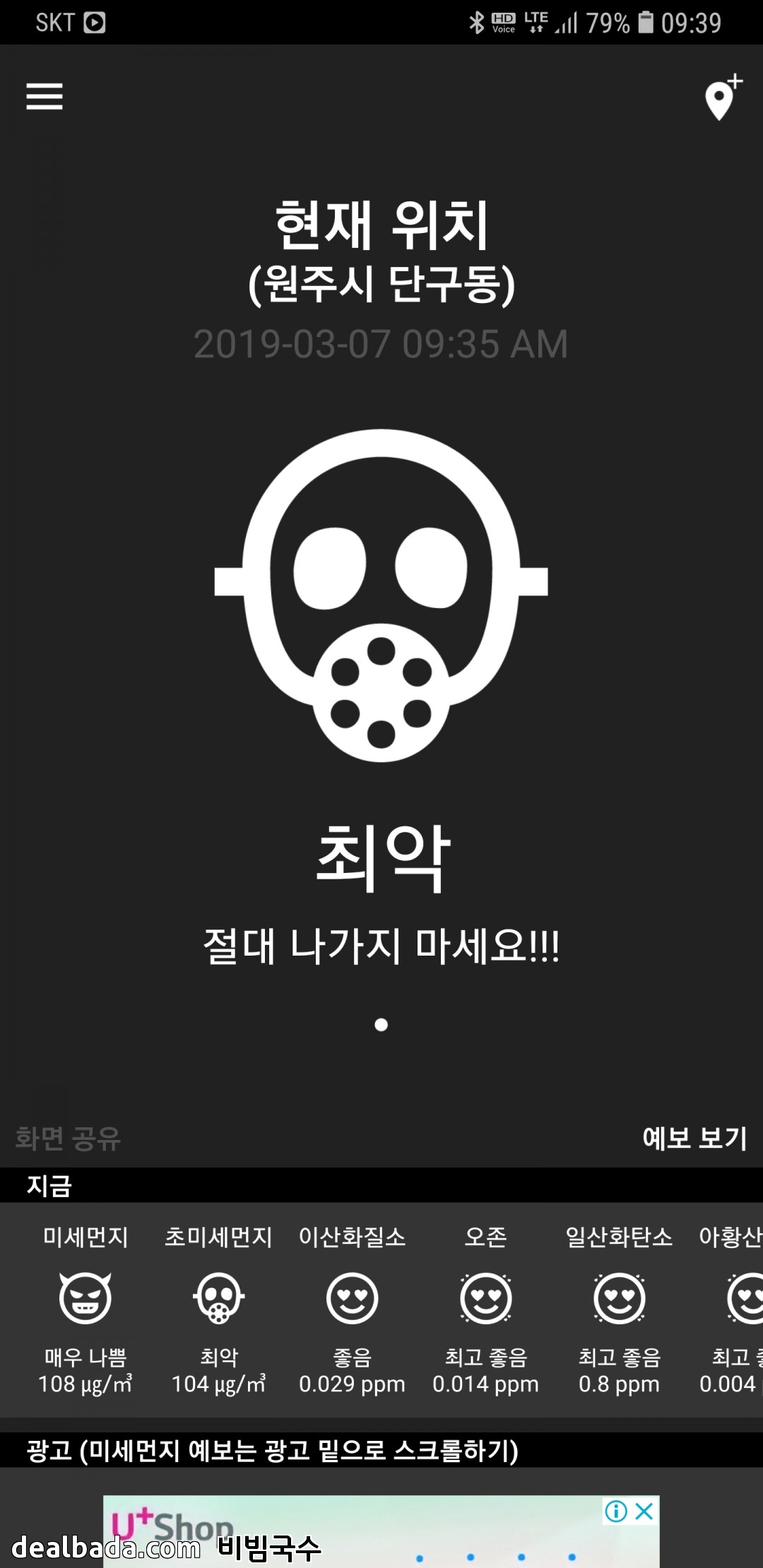 서울도 지역에 따라 달라요... 제가 사는지역은 상당히 나쁨 뜨네요 ㅠ |