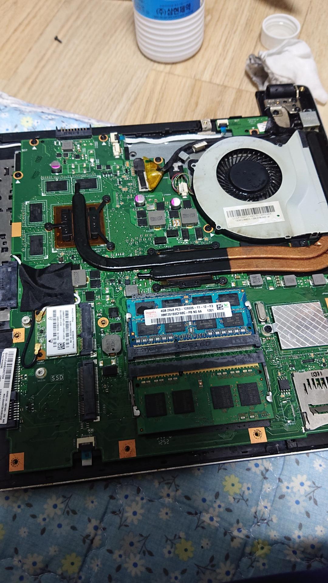 노트북 뜯어서 알콜+칫솔로 기판 다 닦고