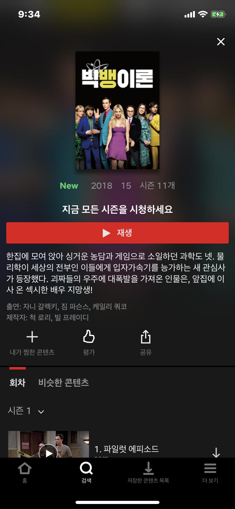 넷플릭스에 빅뱅이론 업뎃됐습니다!!!