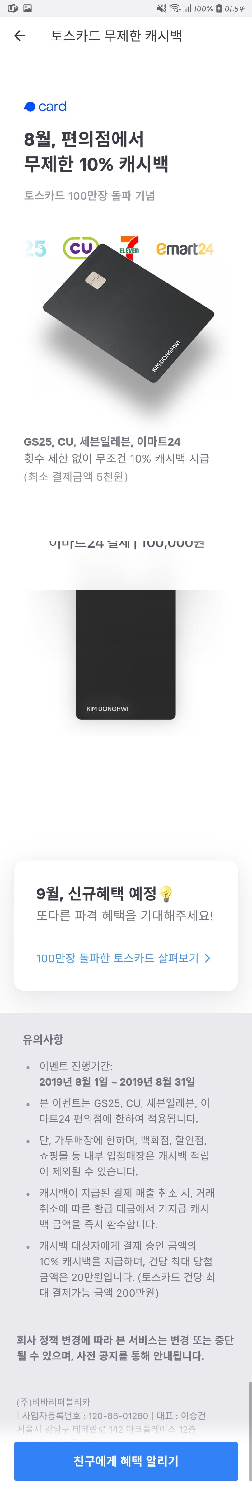발급일자 상관없이 8월에는 토스카드 가진 누구나 저 혜택을 받는 거예요! |
