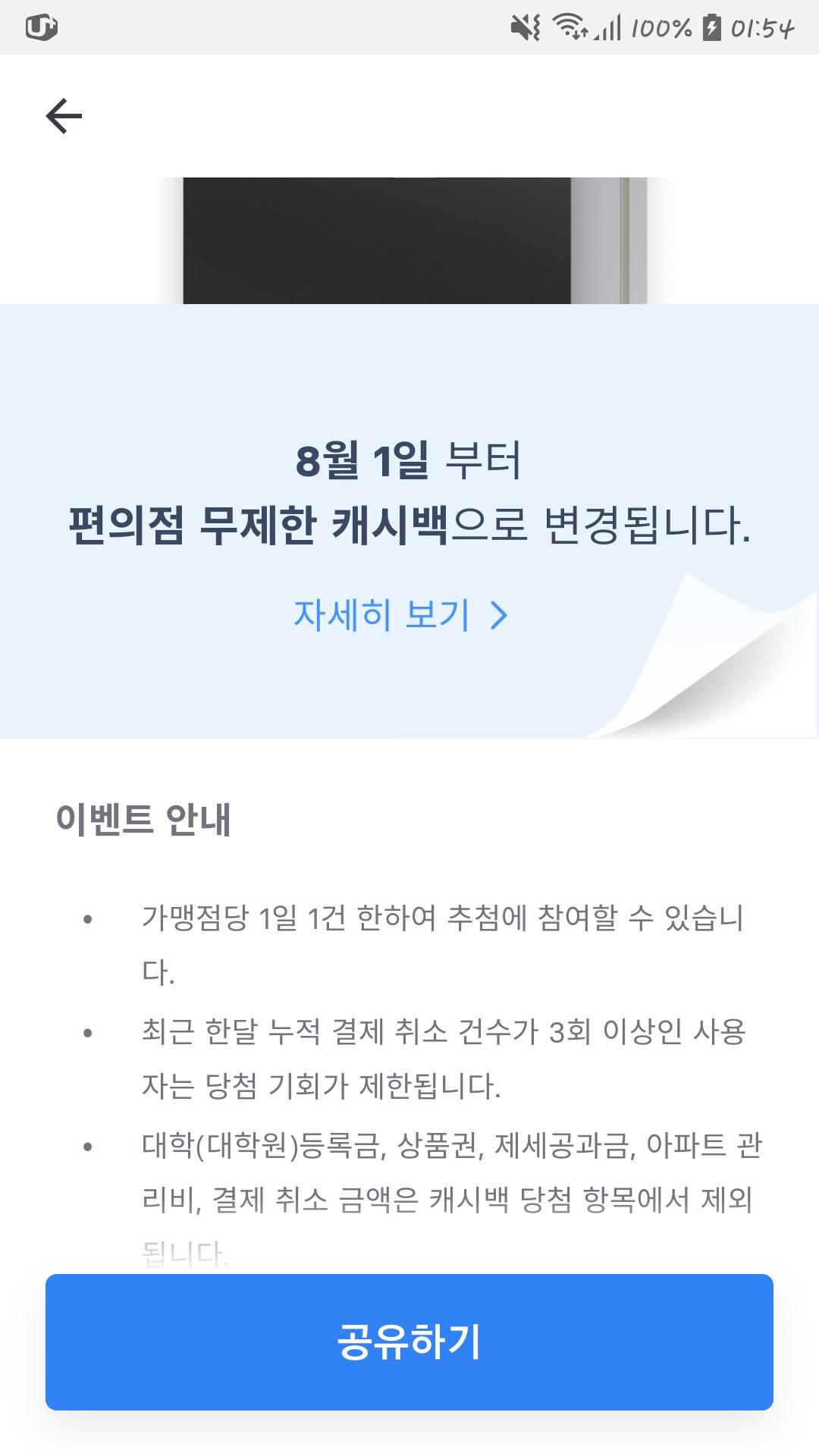 무제한 캐시백으로 포장했지만 실제는 5천원 이상 결제건만 캐시백 되는거라서 아쉬워요ㅠㅠ