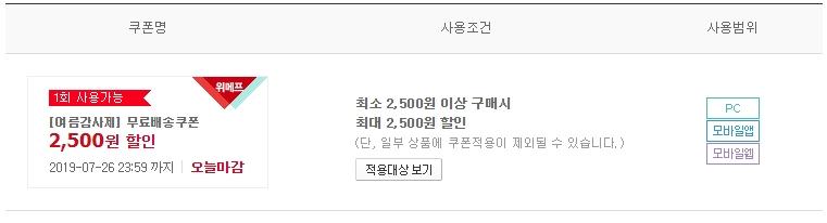 1. 위메프 2,500원이상 [2,500원할인쿠폰 발행]