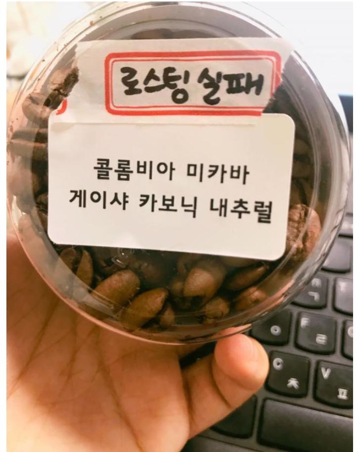 로스팅을 실패했으면 통에 담기 전에 그냥 폐기했어야 하는데 저렇게 통에 담아 보낸 걸 보면 실수로 넣은거라고 생각하기가 힘드네요... |