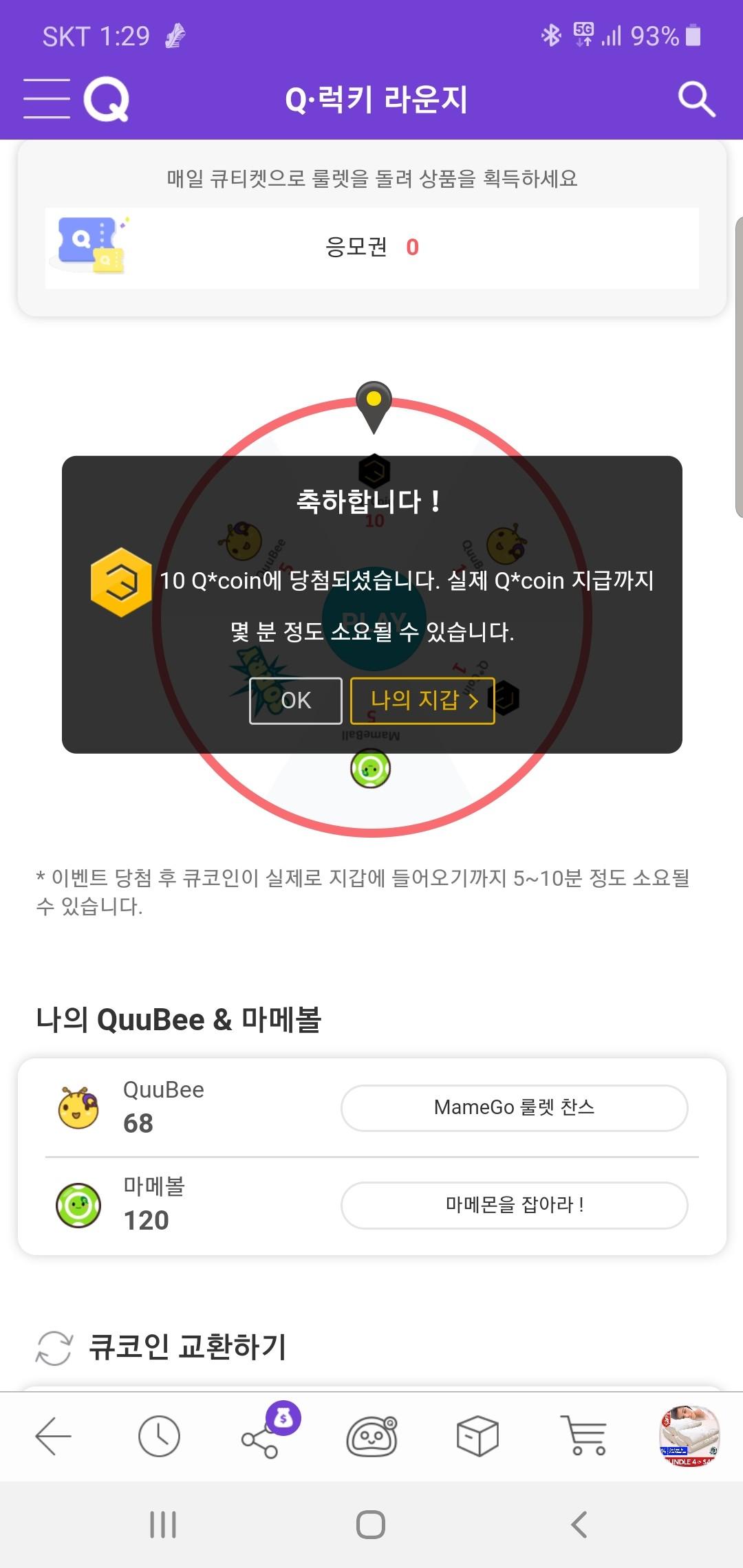 큐베기준으로 한달에 최소 2코인 정도는 모일수 있으니 한달 2천원정도면 괜찮은 출첵인것 같습니다 |