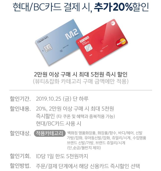 현대/BC카드 20% 즉시 할인 (2만 이상 최대 5천 할인)