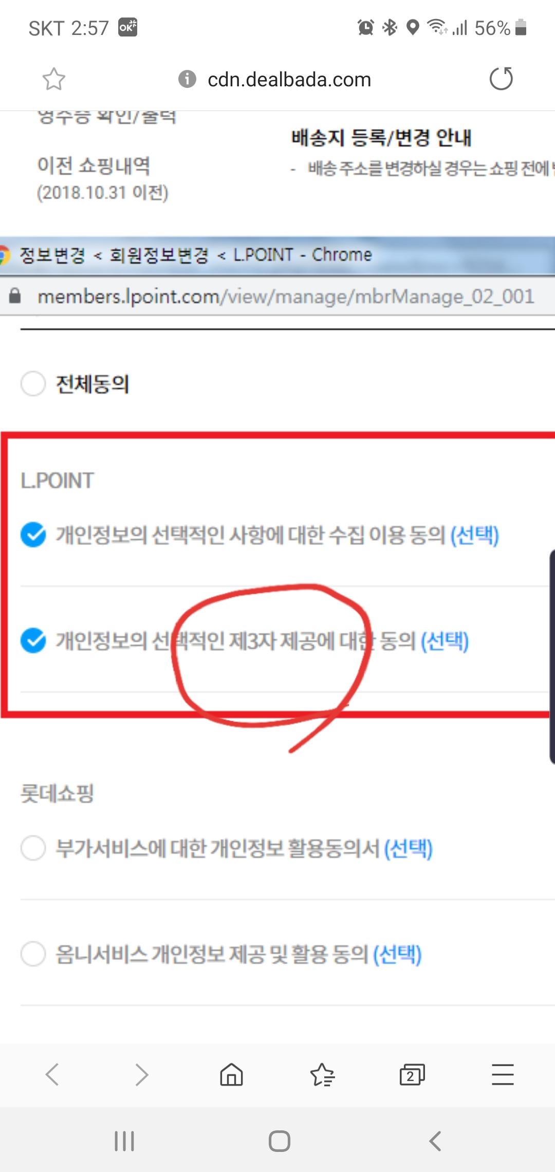 롯데쇼핑은 상관없고 엘포인트 두가지에 모두 동의를 해야한다네요 |