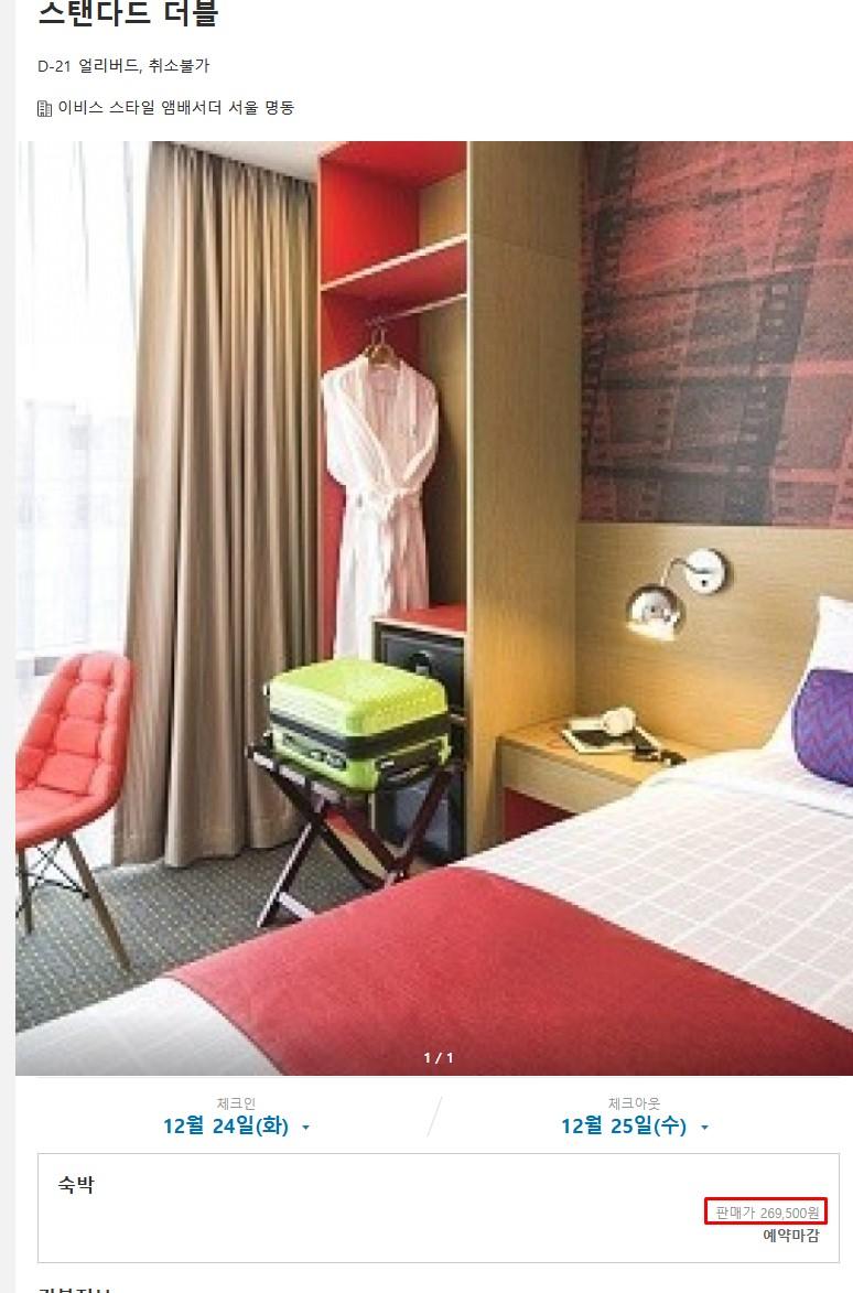 크리스마스 이브의 경우 방이 별로 없을거라 저 가격이면 괜찮은 것 같네요