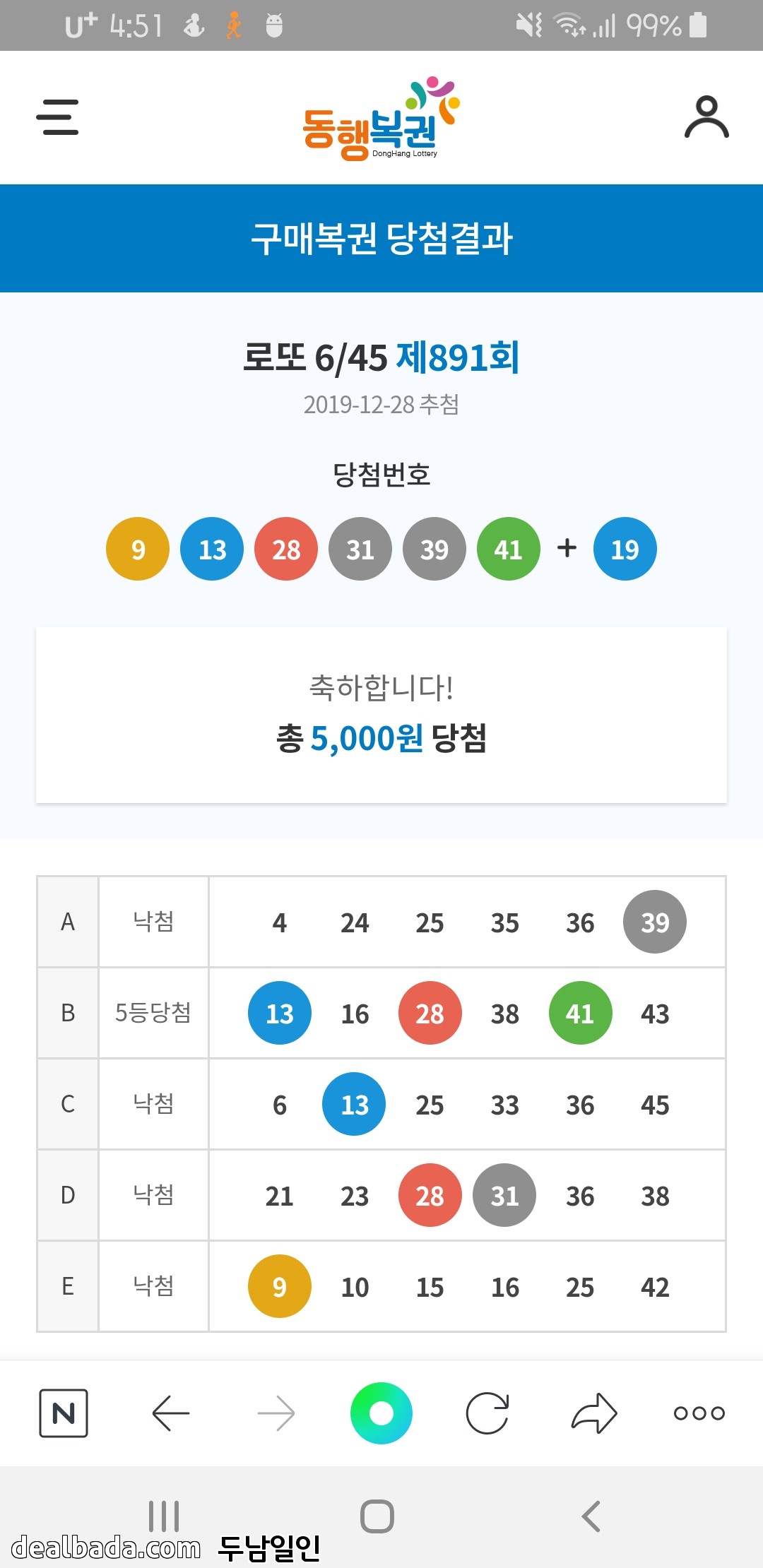 5천원사서 거기있는 번호 조합해서