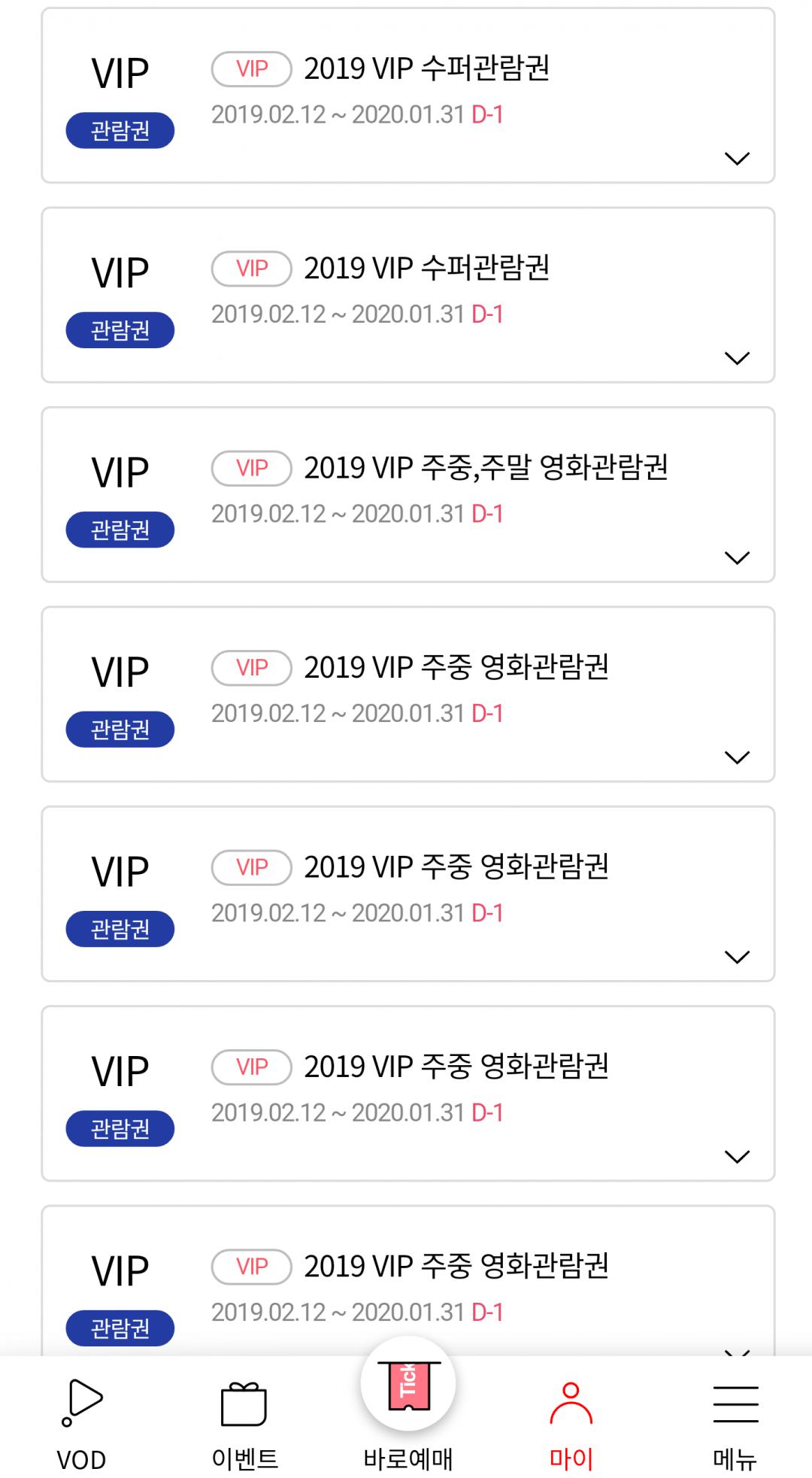 메가박스표가 2월까지라 신경도 안 쓰고 있었네요