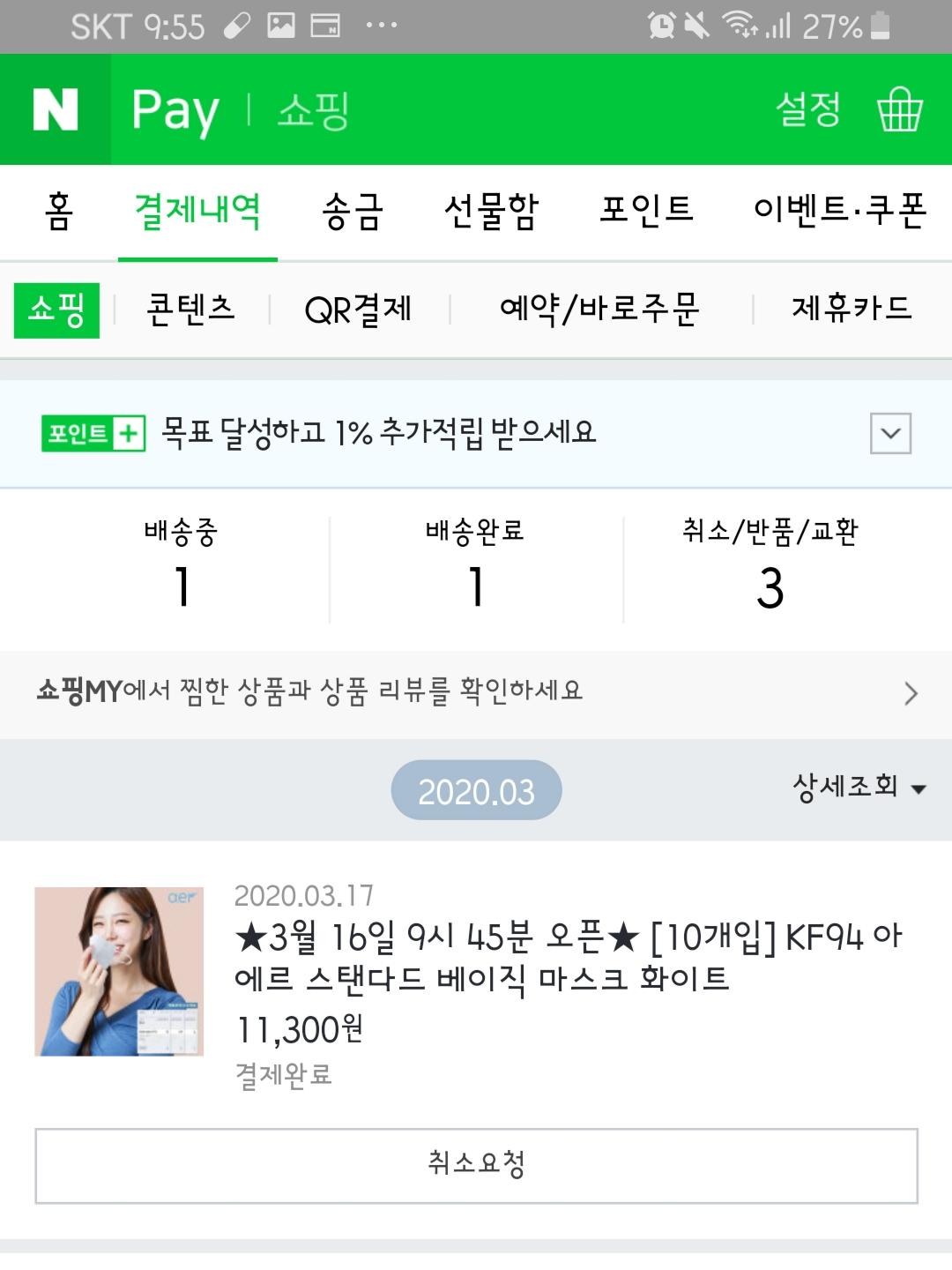 부럽네요~ 공적마스크로 아에르 스탠다드 마스크 처음써봤는데 좋더라고요. |