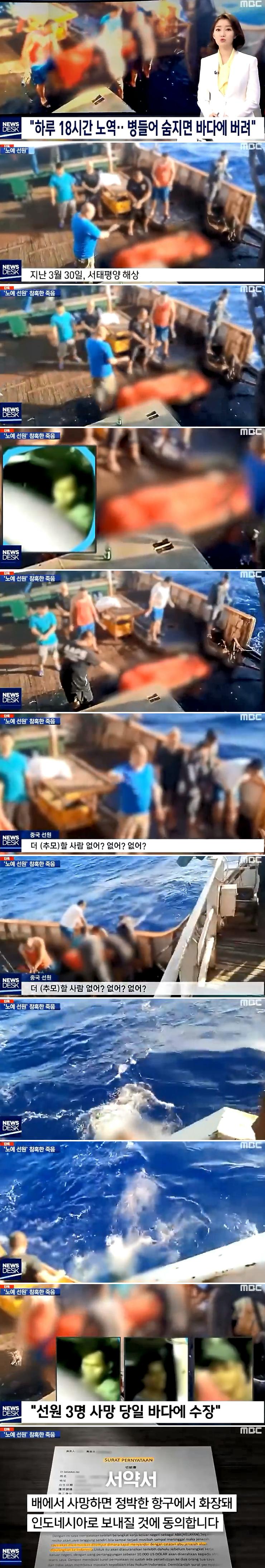 지금부터 보실 내용은 중국 어선에서 발생한 인도네시아 선원들의 끔찍한 죽음과 인권 침해 실태입니다.