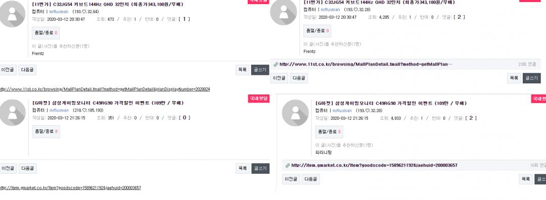 왼쪽이 원글 오른쪽이 링크 수정후인데 아이피도 바뀝니다?!