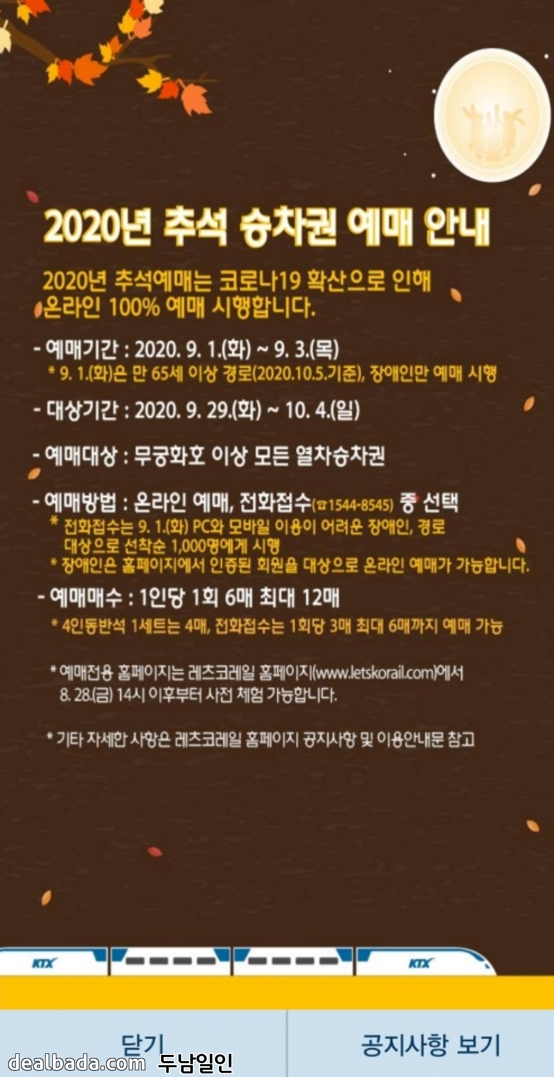 다음주부터 추석승차권 예매 가능합니다.^^