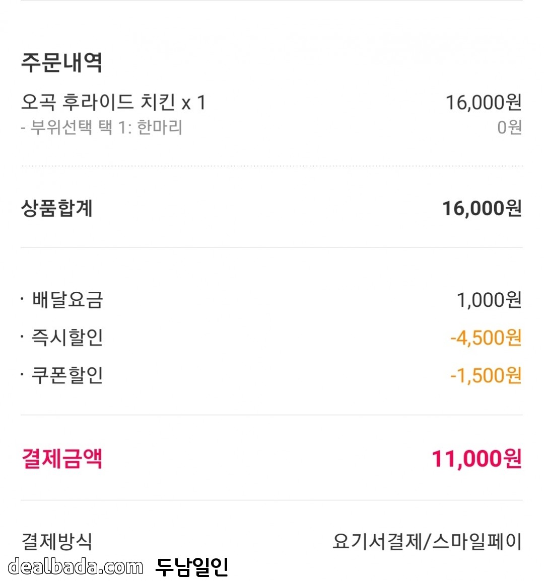 둘째랑 둘이 방콕 중인데 치킨 먹고 싶다고 해서 1마리 주문했습니다.