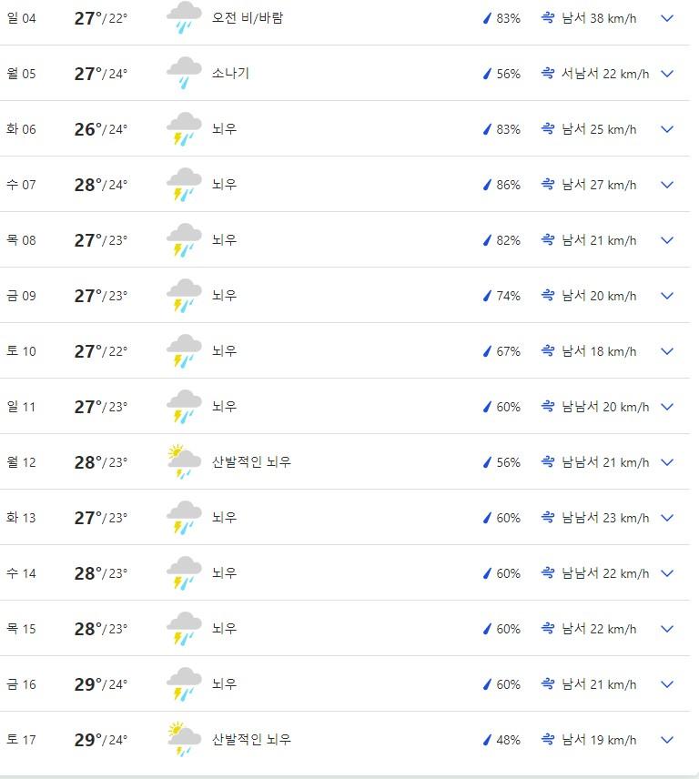 장마가 늦게 시작한 만큼 마니 늦어질까요? 휴가계획 짜 놓고 예약한게 무산이 될꺼 같다는....ㅠ |