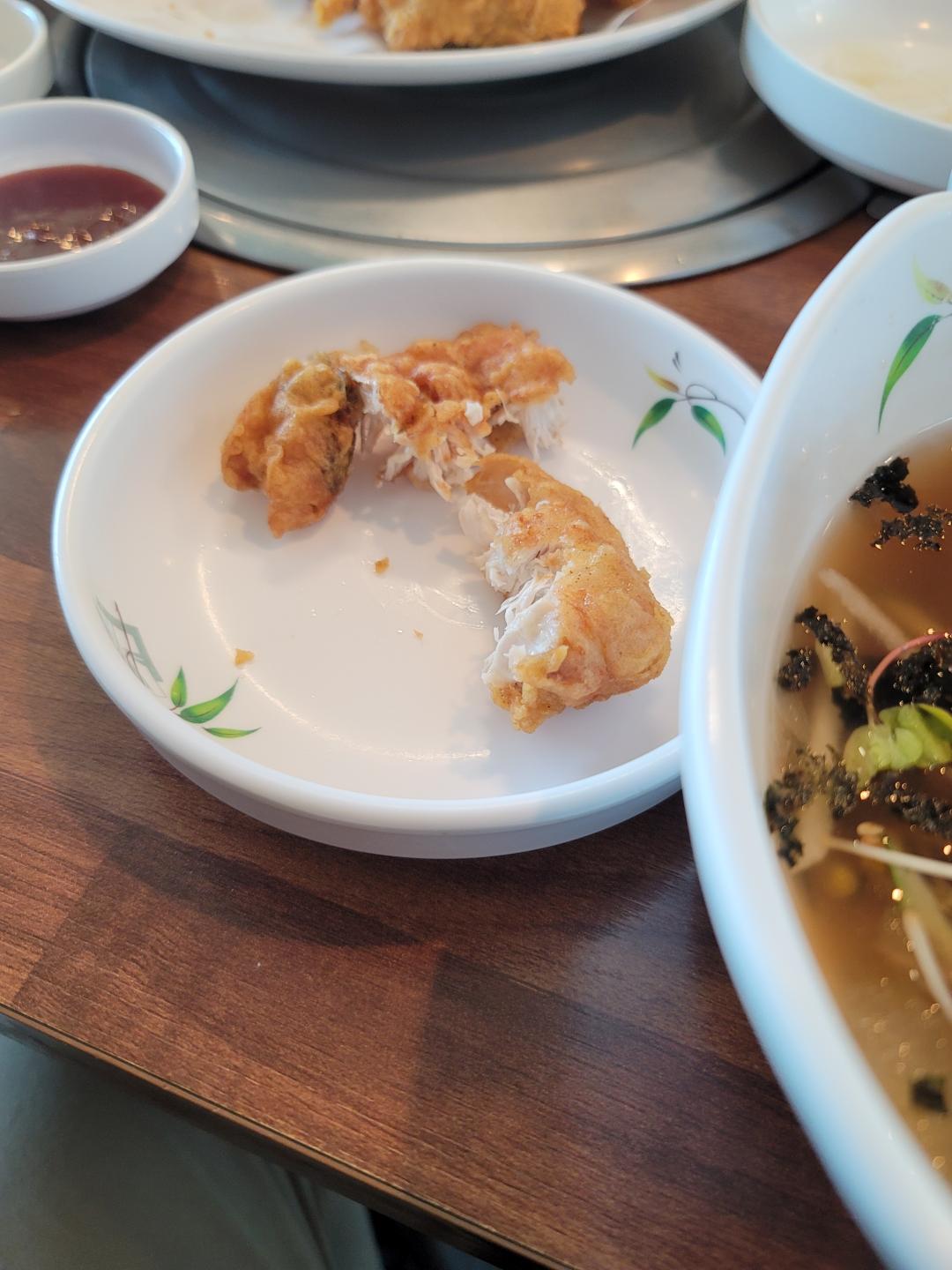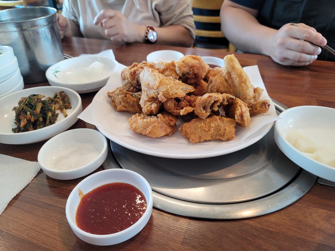 끝나고 나오니 11시다 다 되어서 집으로 가는길에 점심을 먹었는데 동생이 몇년전에 TV에 나온 맛집이 있다고 해서 20분을 이동해서 먹었는데 메밀막국수에 메밀치킨을 팔더군요. 그래서 물막국수 4그릇에 치킨 1마리 시켜서 먹는데 치킨을 방금 튀긴거 먹는거라 맛있게 먹었고 물막국수도 국물이 새콤하고 시원해서 좋았어요~
