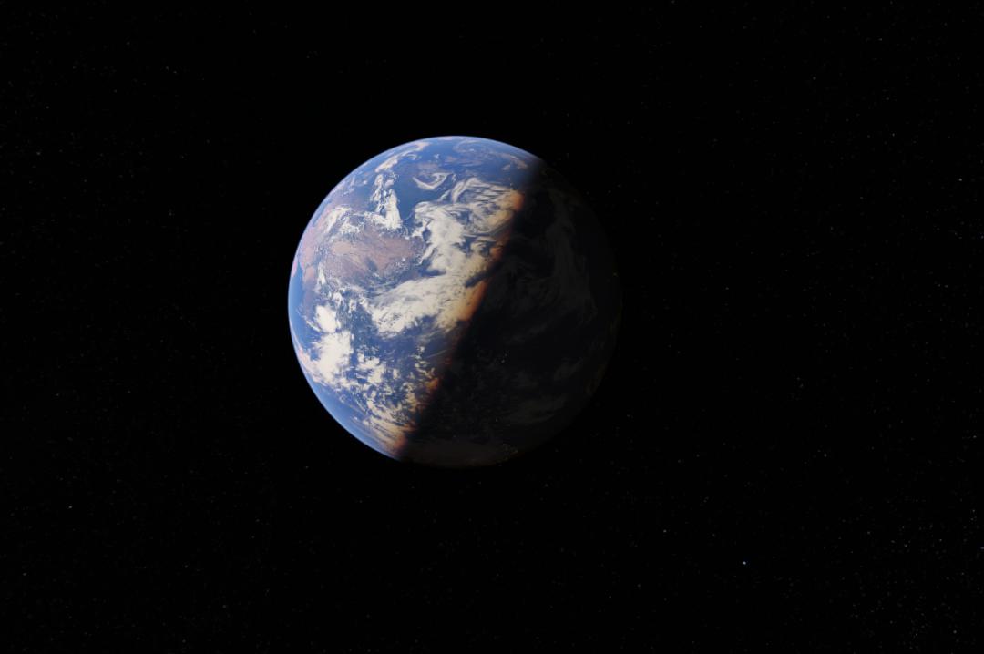 구글어스처럼 지도 보이시나요? 이게 실시간처럼 구름이랑 시간대별로 어두워지더라고요.