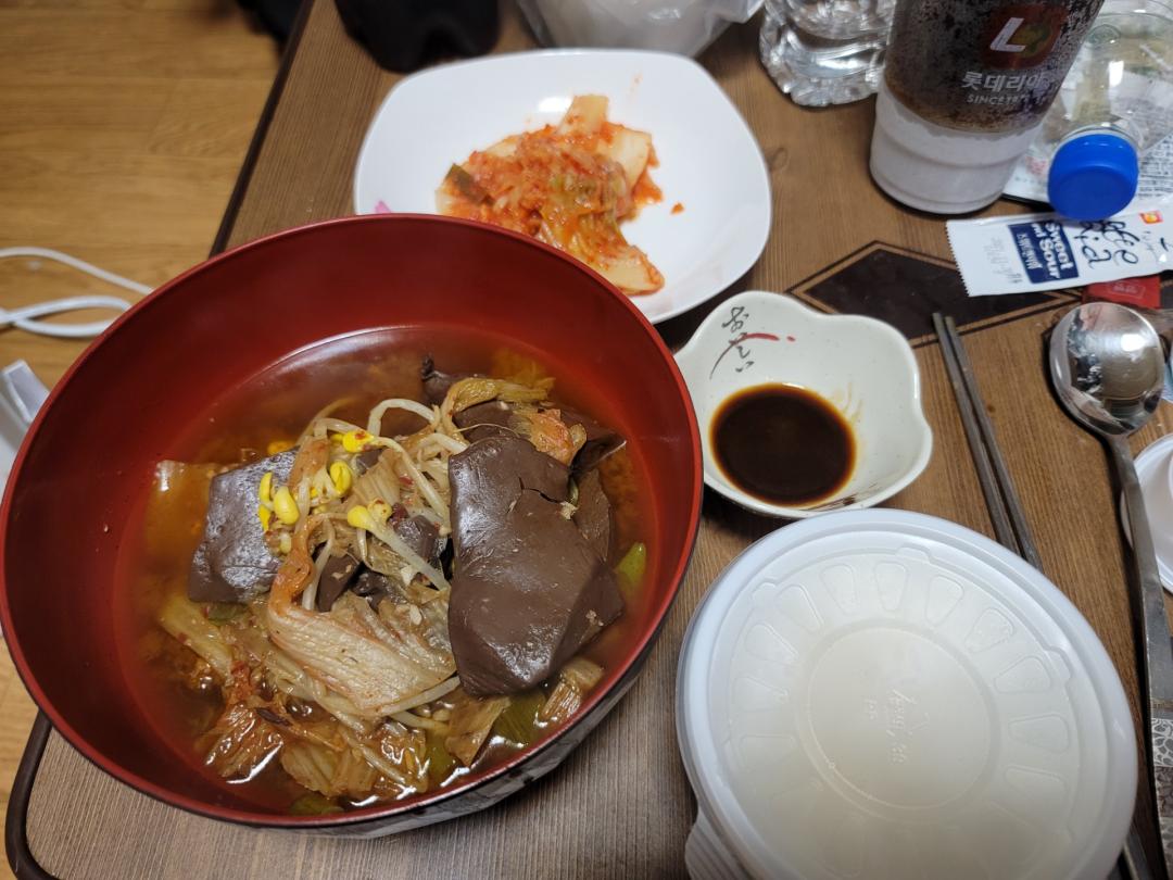 그래서 국물있는거 먹을려고 해서 배민에서 선지해장국을 주문했네요. 벌집양도 포함이라고 했는데 선지 많이달라고 요청했더니 벌집 양은 조금밖에 없네요...
