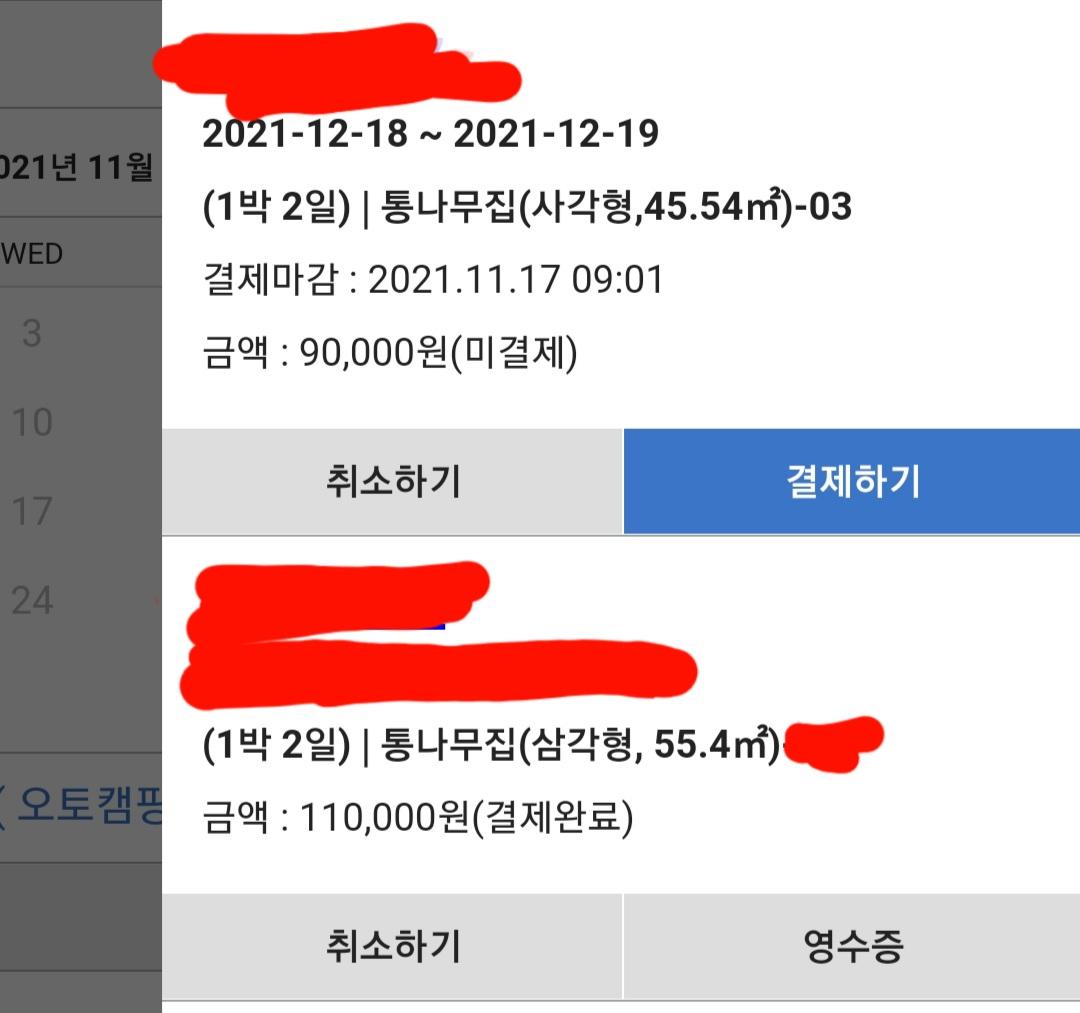 이곳은 가예약하면 48시간안에 결제해야 예약이 확정되는 시스템이고 18일꺼는 아직 미결제상태입니다.