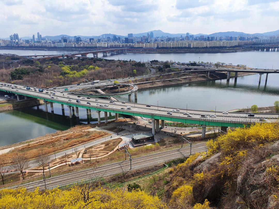 이번엔 개나리 보러 온거라, 응봉역쪽으로 가서 중랑천옆 산책로로 내려간후