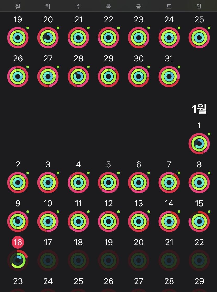 운동해서 열심히 채우며 기록을 이어나가고 있었는데
