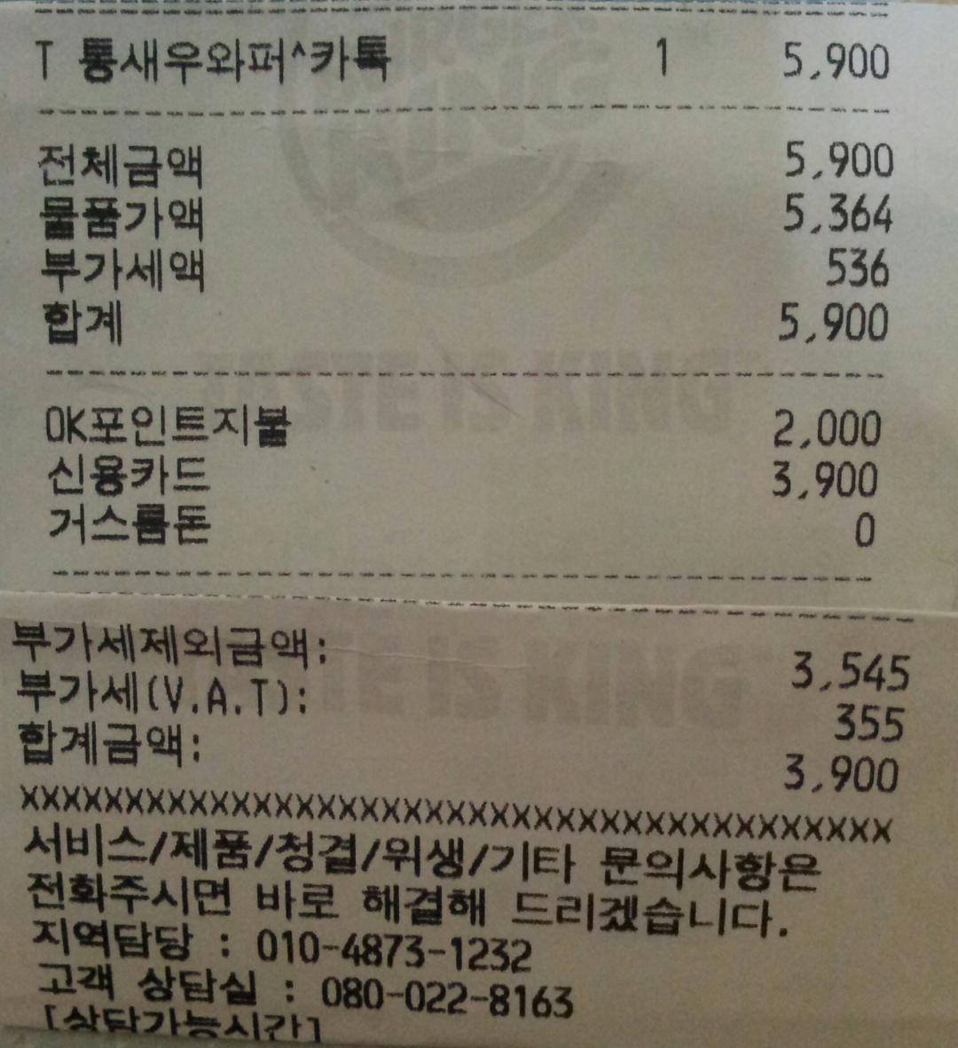 전 캐쉬백 5000미만은 사용안된대서 그자리에서 캐쉬백 충전하고 결제해써요 미리줌만 쓰는데도 그렇더라구요;;; 초큼 이상했음ㅠ 맛은 이때껏먹은 와퍼중 제일 입에 맞았아여ㅋ |