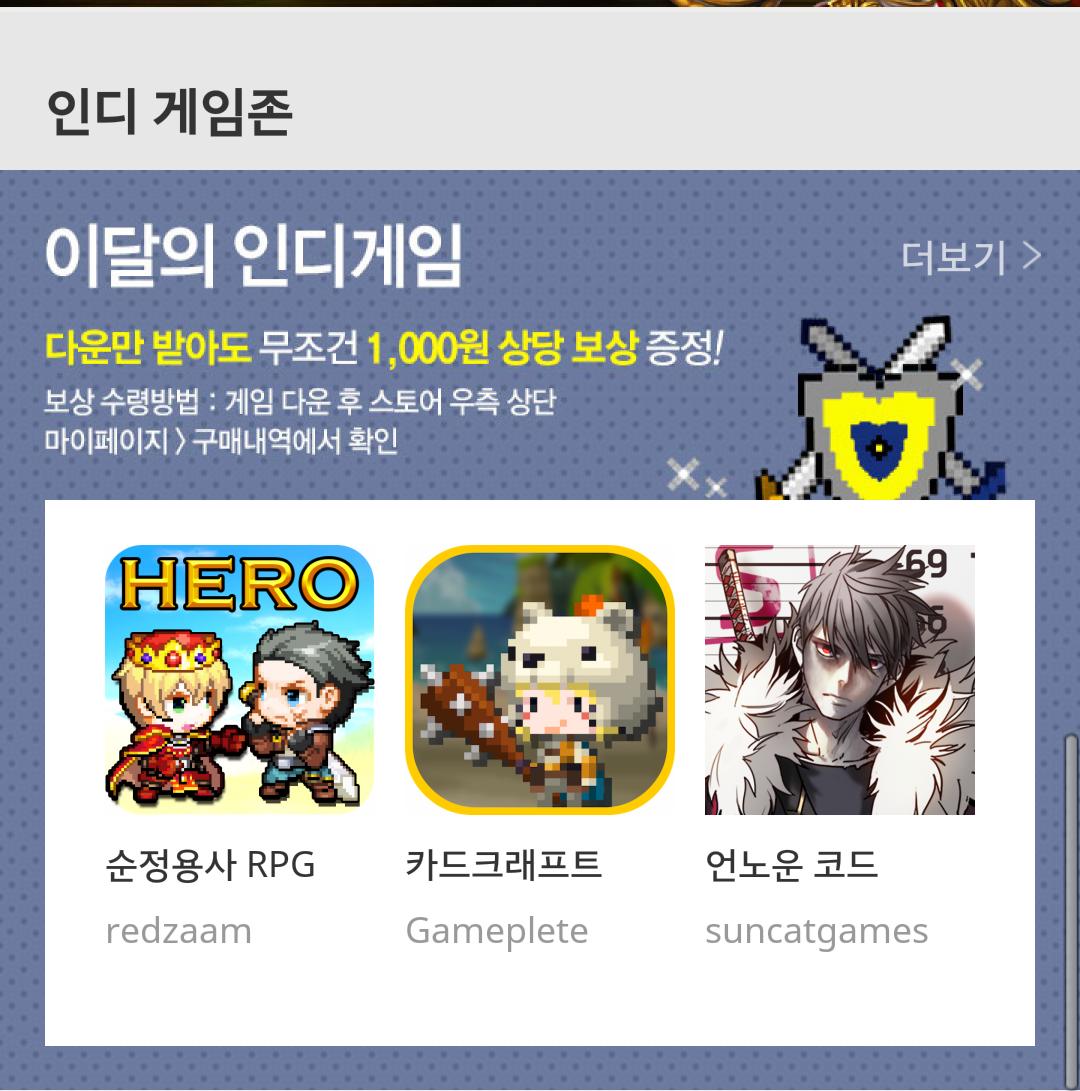 skt 원스토어인데 이벤트 탭 맨아래 인디게임란이없네요.