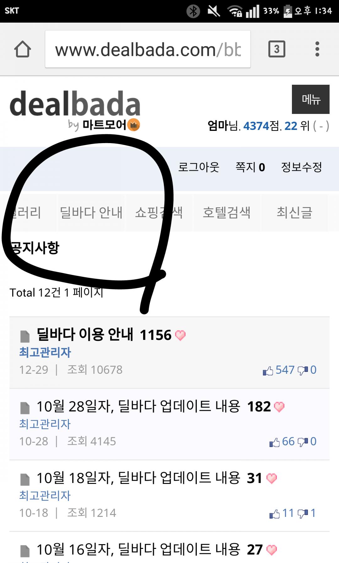 공지사항 자체가 숨어있어요ㅋ |