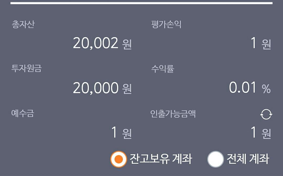 투자금액 2만원 - 그마저도 이벤트로 받은거라....