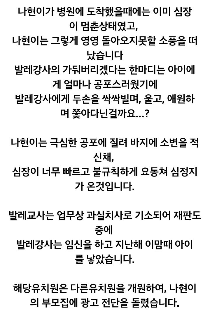 그때 이후로 그러네요 아이들이 어린이집을 극도로 가기 싫어한다면 억지로 보내지 말고 좀 더 신중히 어린이집에서 어떤 생활을 하는지 부모가 관심 갖고 알아보셔야 한다고.. 말이죠