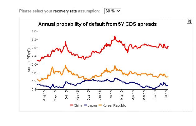 각 나라가 연간 부도날 확률은 일본이 1% 한국이 1.4% 중국이 2.8%입니다.