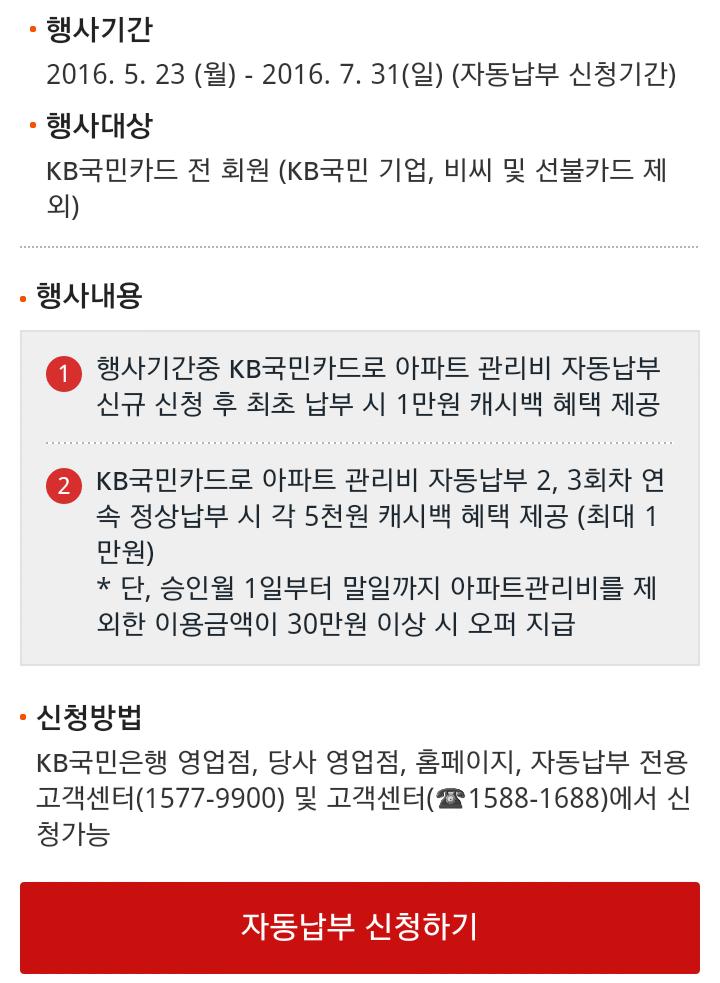 댓글 답변 제한시간 기다리는 동안 답글이 삭제되었네요! 이벤트 이름이 "아파트" 관리비 납부라서 아파트만 해당일거에요 |
