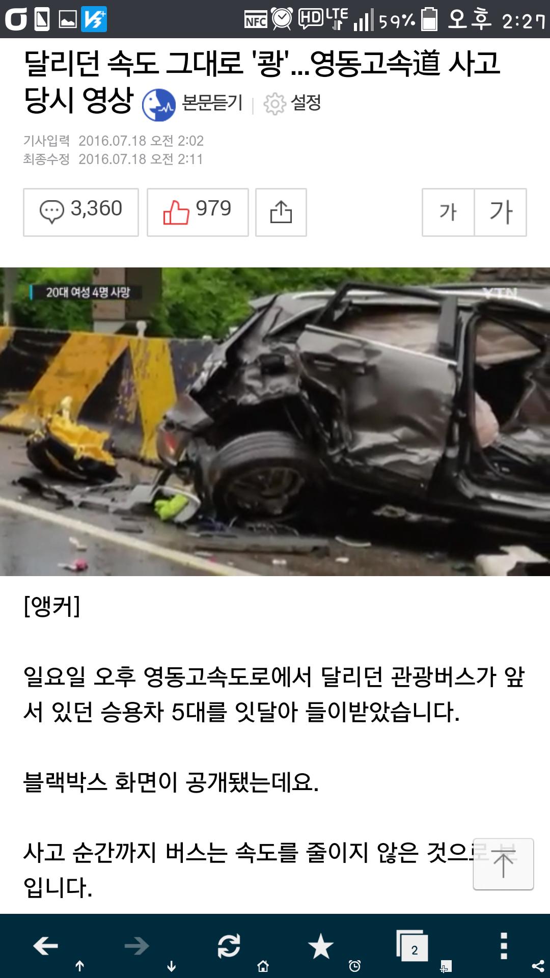 무게가 많이 나가는 버스, 및 대형트럭에는 운전자를 모니터링하는 블랙박스 장착을 의무화해야 할 것 같습니다. 그래야 운전자가 졸음운전을 했는지 아니면 스마트폰을 보며 운전했는지 알 수가 있겠지요. |