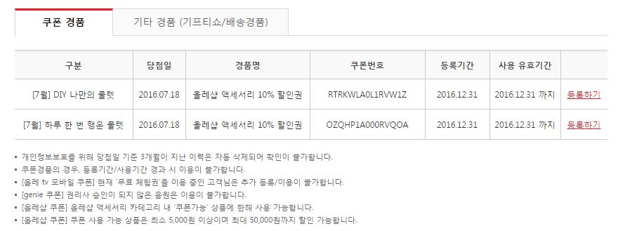 올레샵 액세서리 10% 할인권 나눔 > 자유게시판