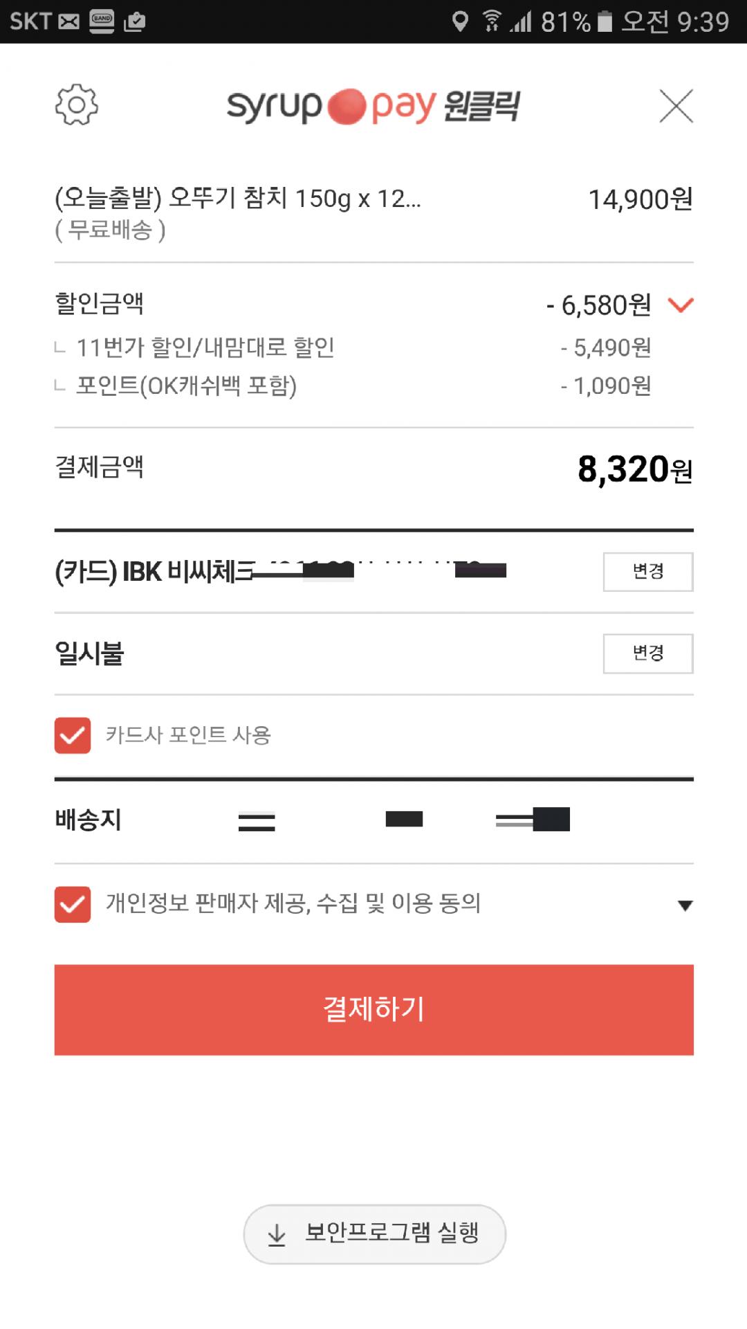 결제하려보니 오케이캐시백 할인도 되서 해봤더니