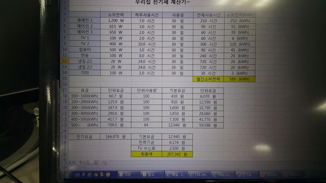 뭔지모를 전력기금도 요금의 0.0407붙어 올라가니...