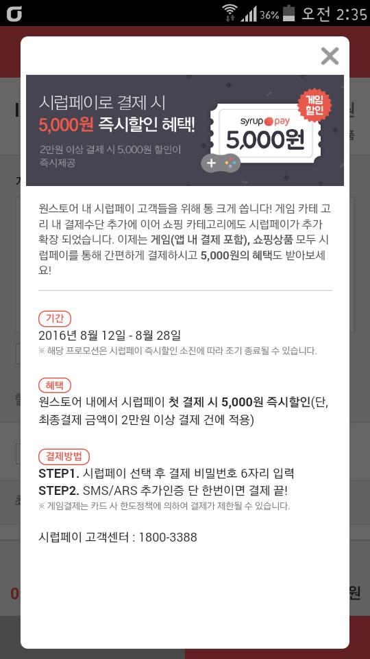 원스토어에서 시럽페이 첫결제 2만이상 5천원 행사도 있어요