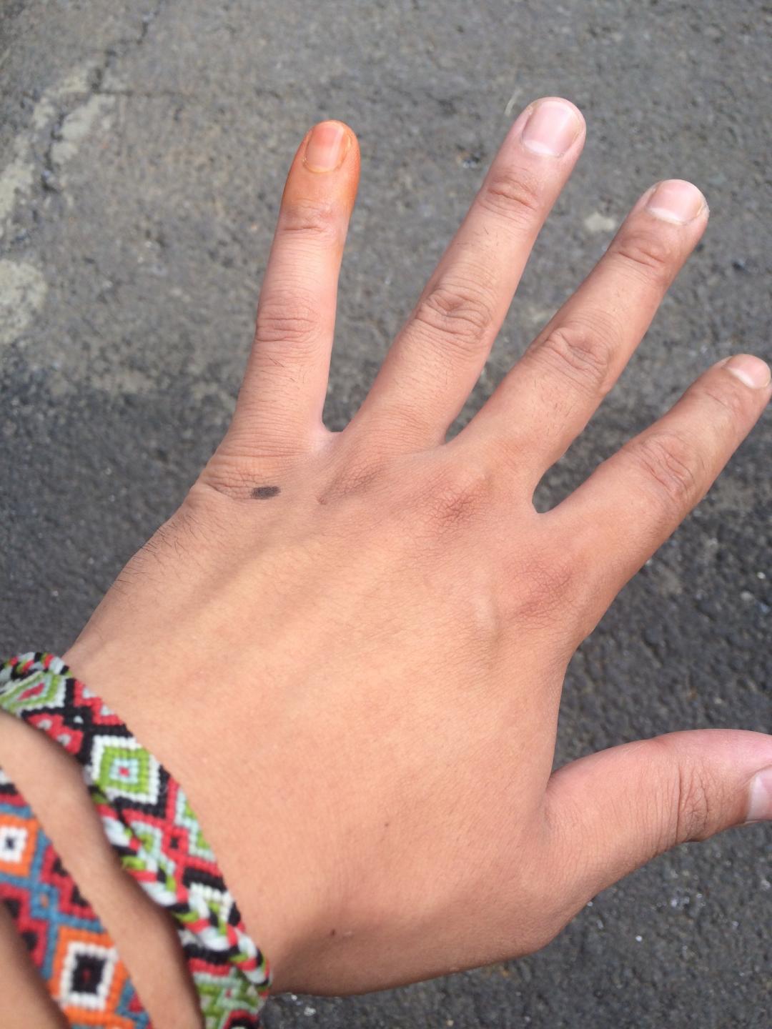손가락만 물들었네요 ㅋㅋㅋㅋㅋㅋㅋㅋ 친구가 이러고 나타나면 뭐 묻었다고 휴지 줄 것 같아요... ㅋㅋㅋㅋ |