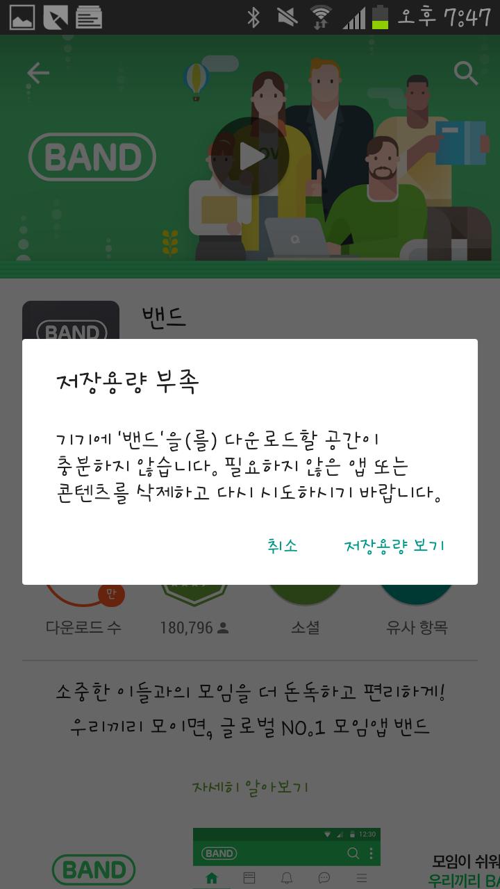 용량이 많이 남았는데 메모리부족 뜨면 겜 어플들 몇개 지워보세요.