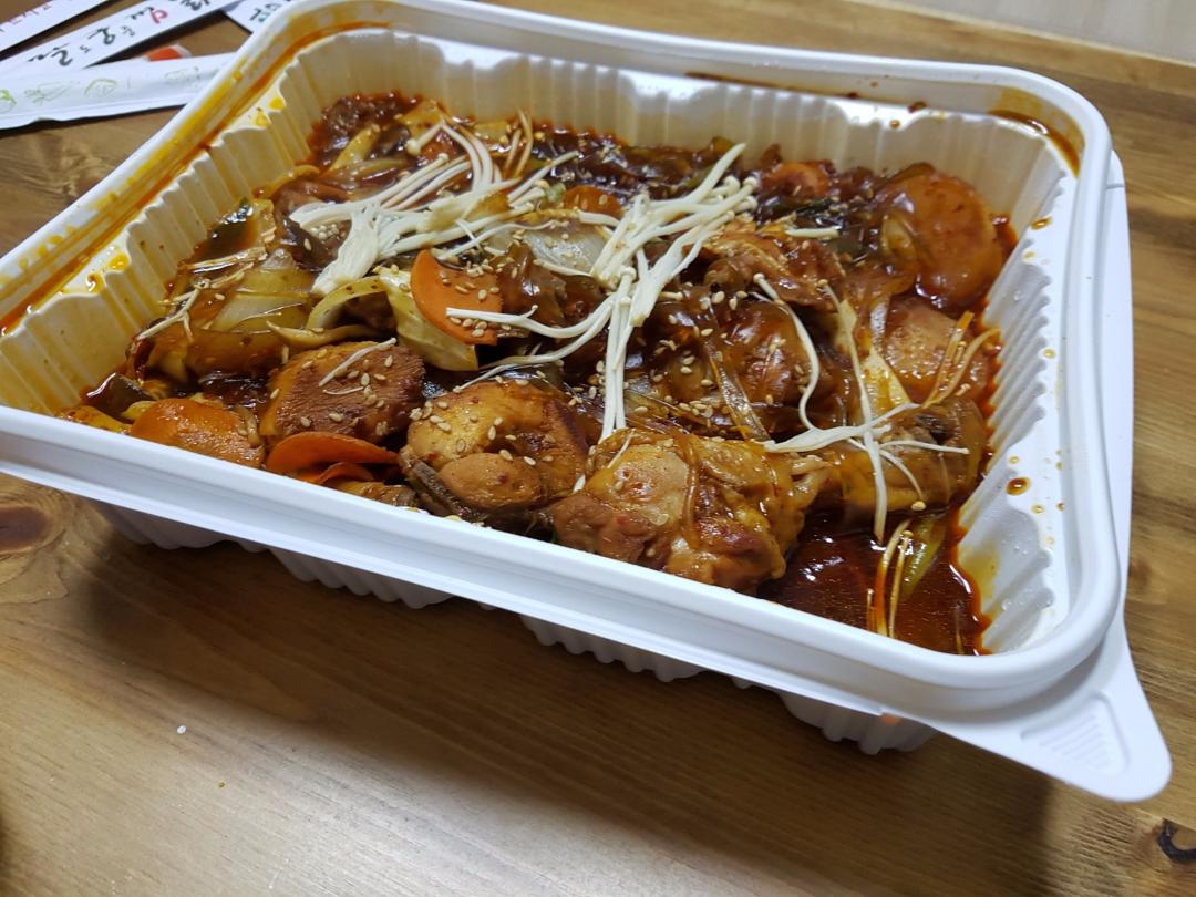 오 찜닭!!넓적당면이 진짜 맛있는데!!안 불고 잘왔나요?저는 늘 봉추찜닭만 먹어봐서..