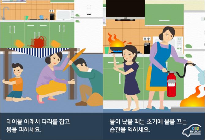 부모님들께도 꼭 당부하세요. 탁자 밑이나 밖으로 빨리 뛰어나가시라고요. |