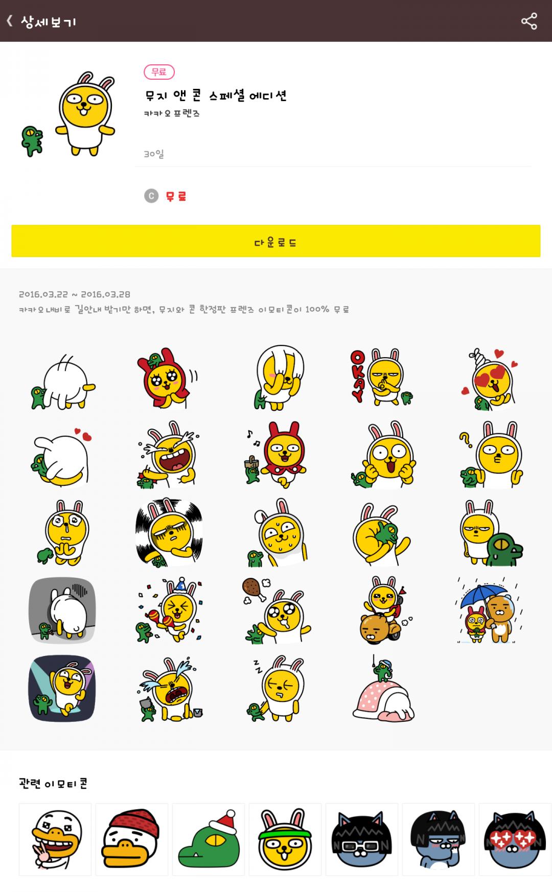 카톡캐릭터 중 무지를 가장 좋아해서 이모티콘 나오길 기다렸는데 드디어 나왔네요