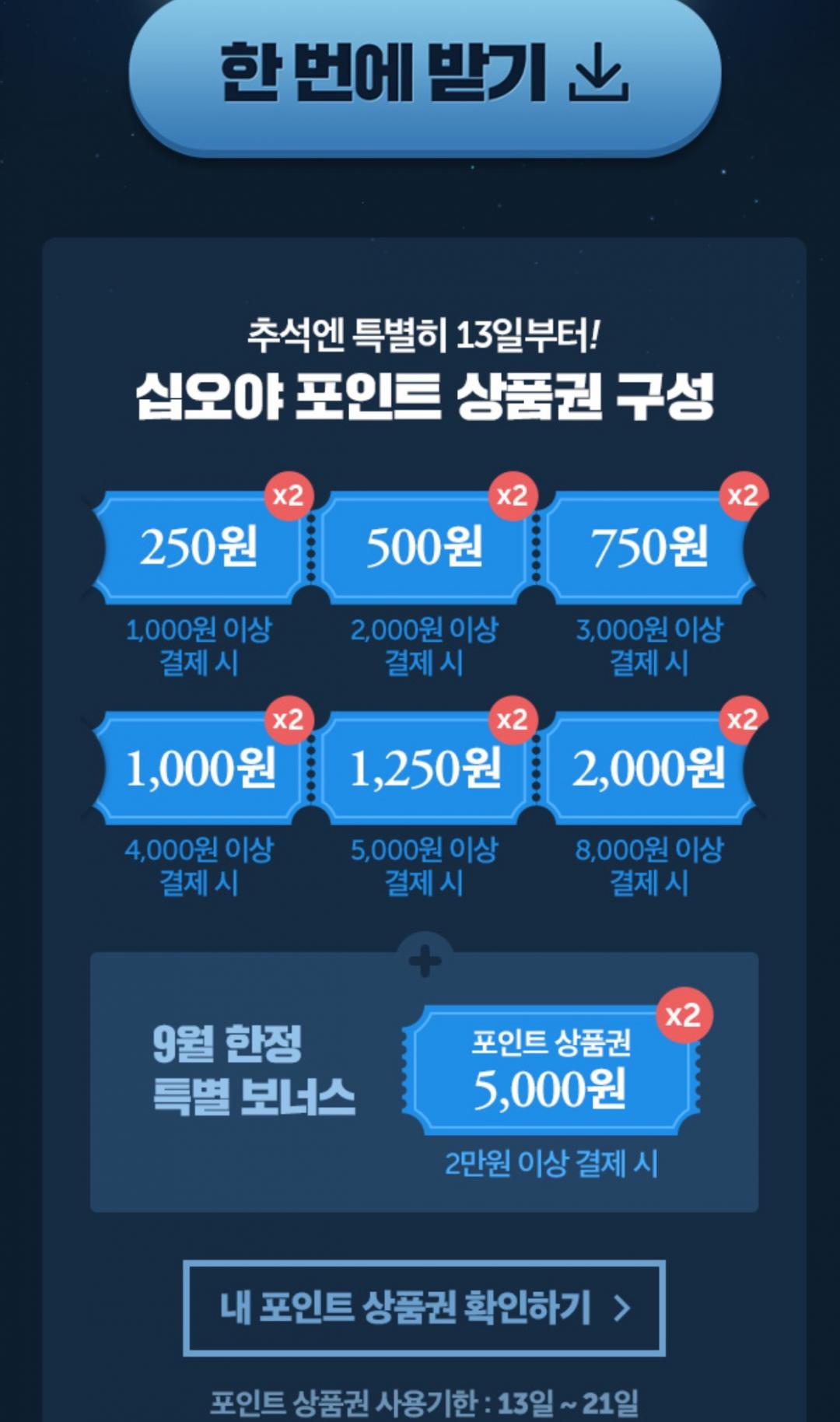 8,000원 이상 2,000원 할인 으로 할인율이 꽤 괜찮습니다.