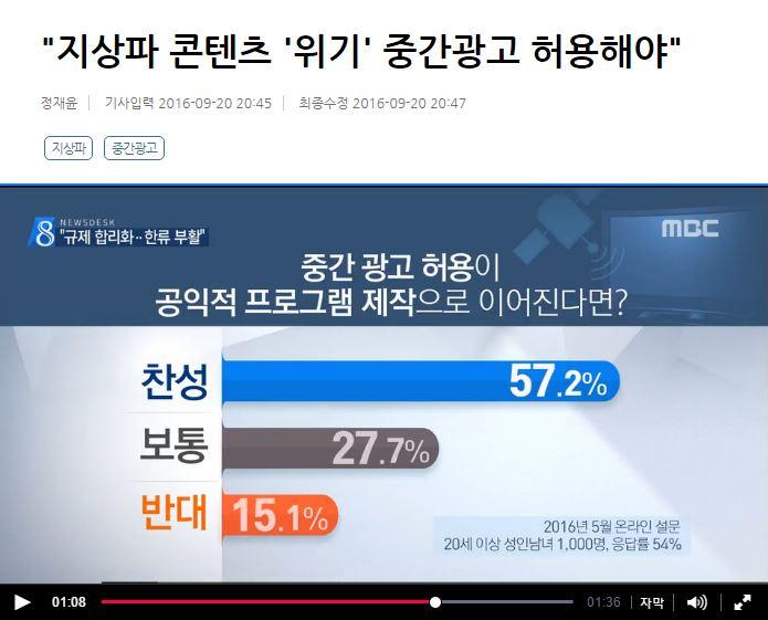 MBC가 지상파 중간광고 도입해야 된다고 방송하네여 ㅋㅋ