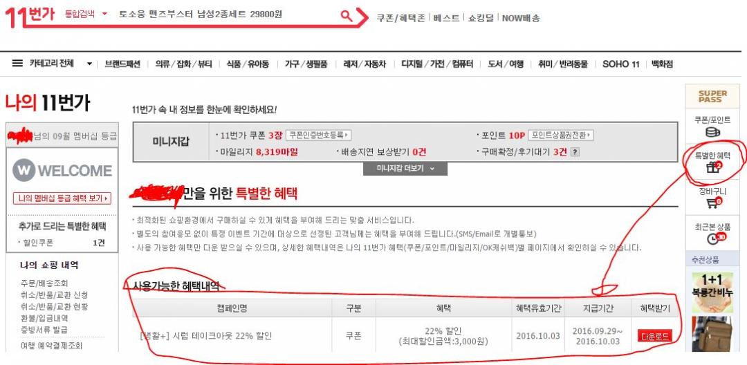 11번가 접속 ->우측상단(pc버젼)->특별한 혜택란을 보시면 랜덤으로