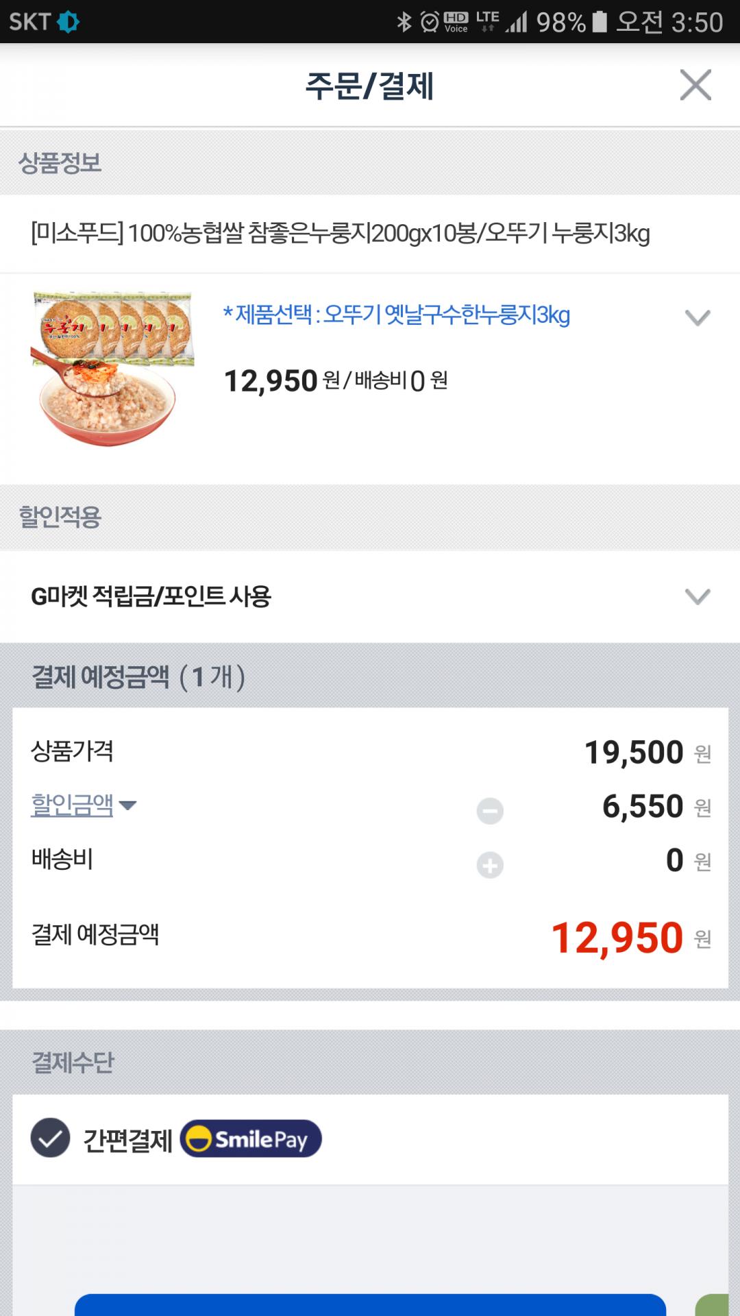 전 지마켓쿠폰으로 누룽지샀어요~