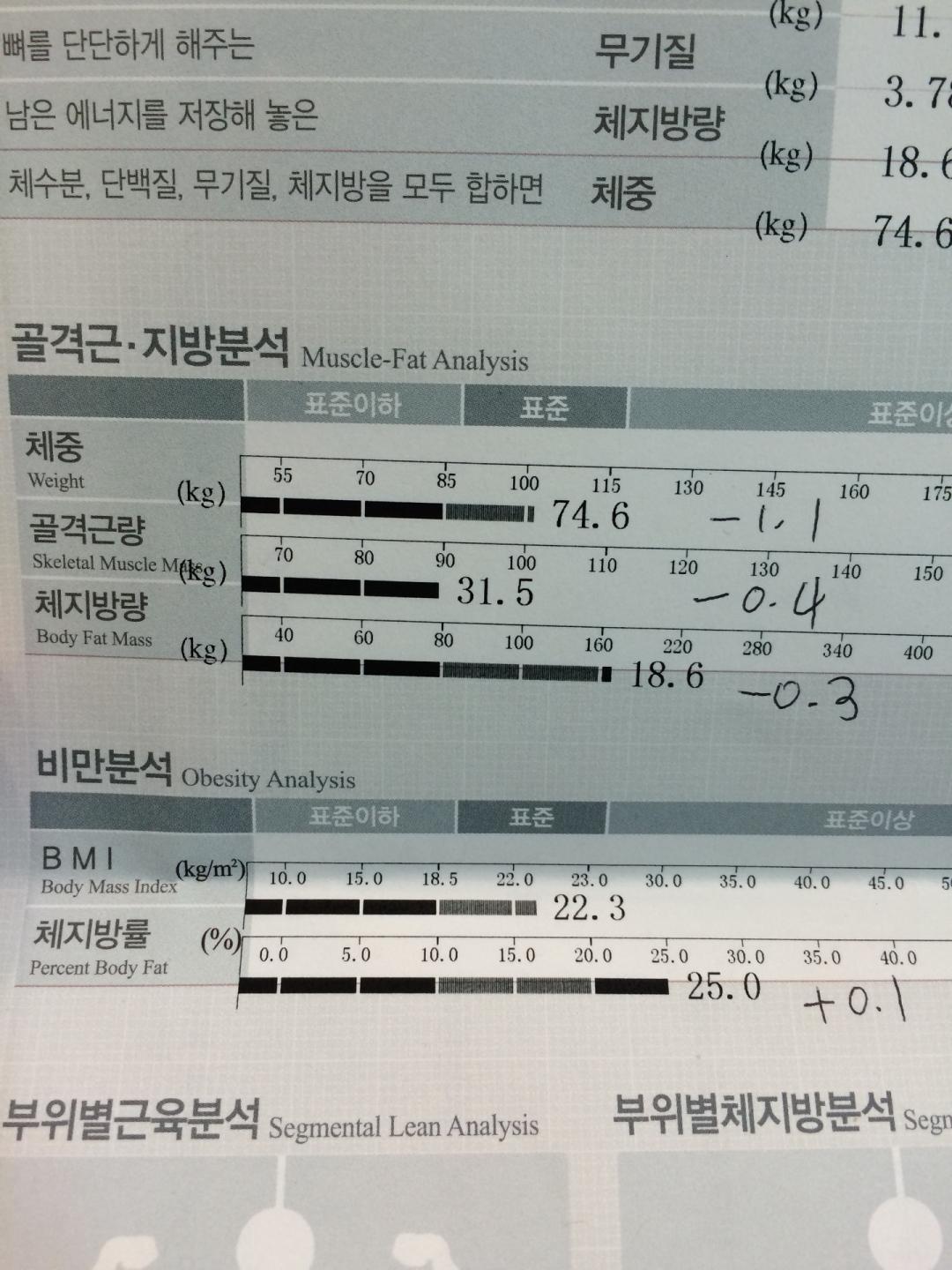 추가합니다. 체지방량은 줄었습니다. 체지방률은 늘었습니다. 지방 절대치는 줄었습니다. |