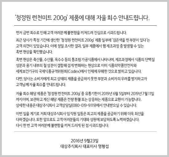 - 인터넷에서 청정원 런천미트 환불공지 발견 . 이날은 휴일이여서 내일 전화하기로 함